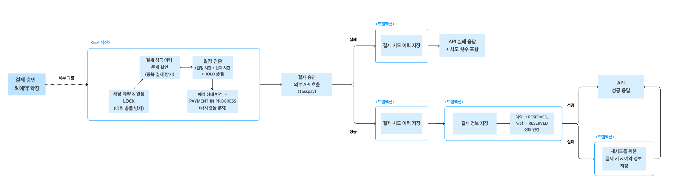 PG사 결제가 성공하면, 이후의 결제 & 예약 정보 저장의 성공 여부와 무관하게 일단 API는 성공 응답 전송