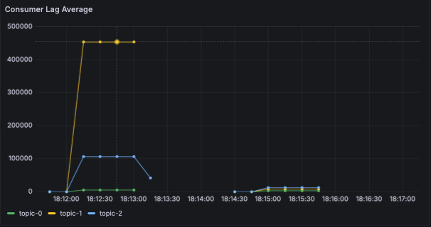 처음 구현을 할 때도 예상했던 문제인 "테스트 레코드 삽입용 프로듀서 + 브로커 3개 + 컨슈머가 모두 같은 물리 서버(로컬 노트북)에서 실행되는 것으로부터 오는 서로간의 간섭" 으로 추측됨. 따라서 이 경우에 브로커와 애플리케이션을 완전히 분리할 수는 없겠으나, 테스트 레코드를 추가하는 과정 / 컨슈머가 처리하는 과정을 분리하는 것 만으로 어느정도는 해결 될 것으로 추측됨.